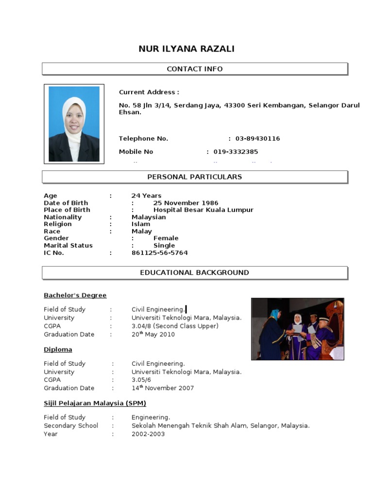 Contoh CV Curriculum Vitae – Portal Malaysia